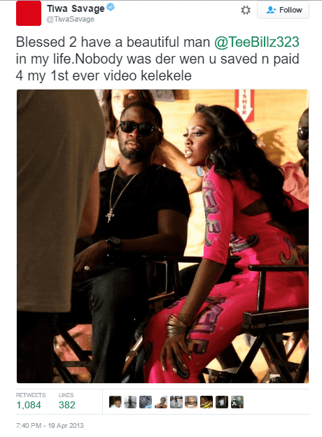 The love Tiwa Savage and Teebillz shared when this tweet was made exists no more.